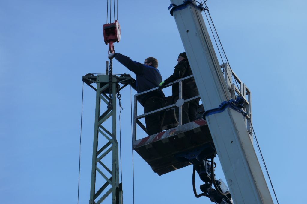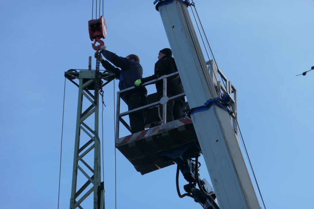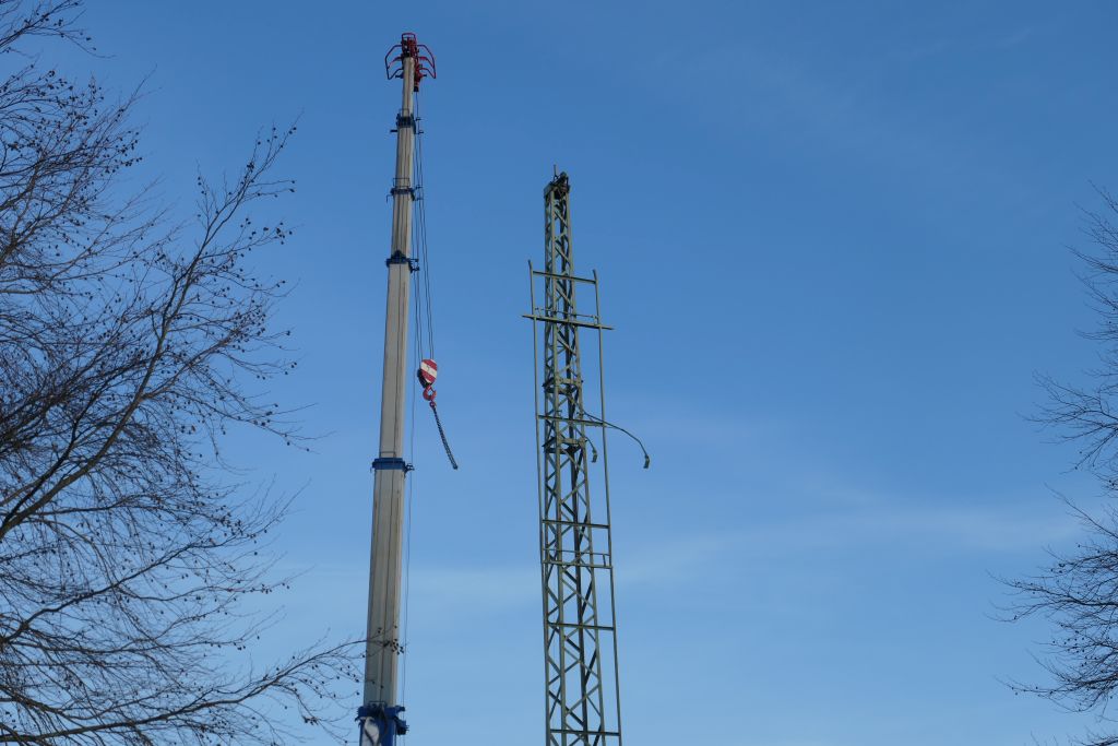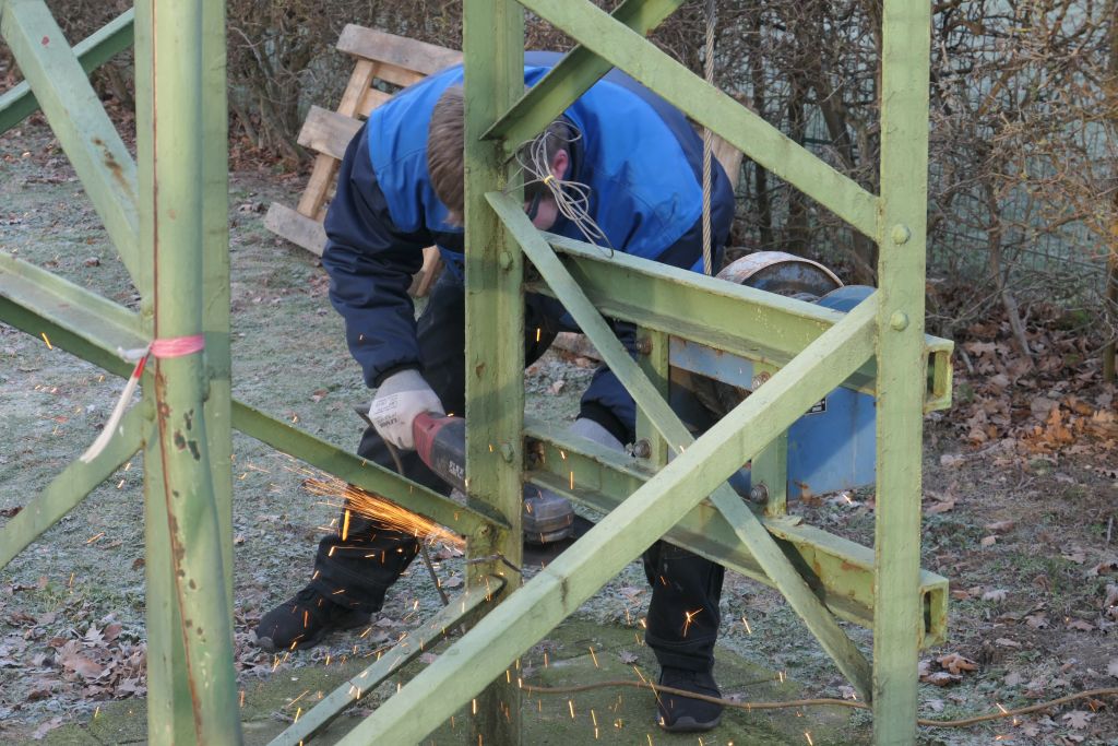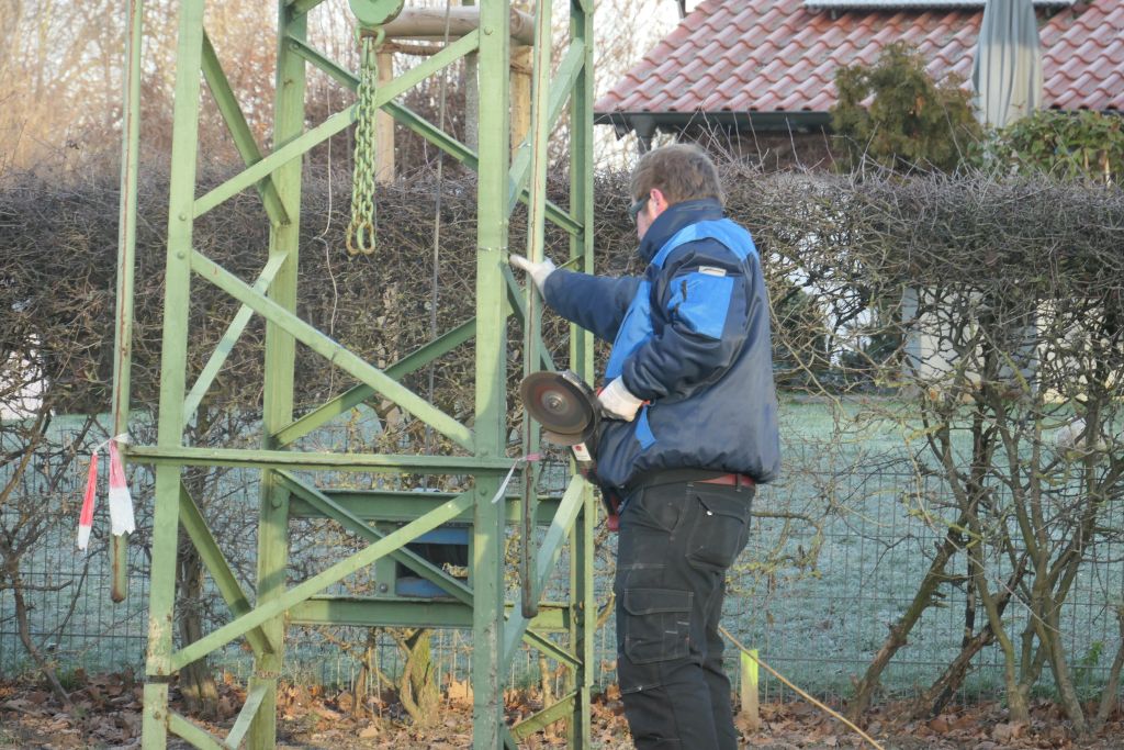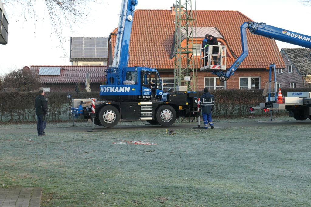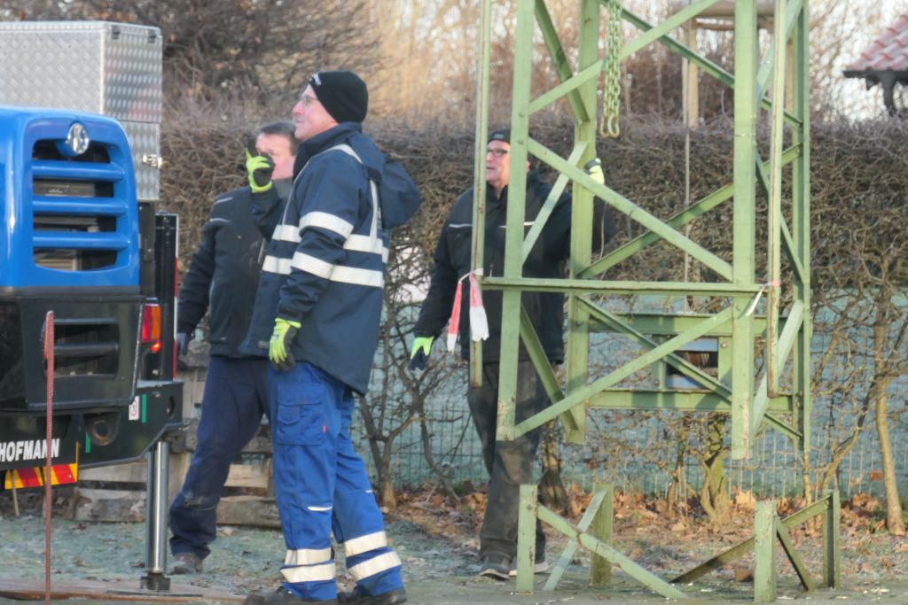 Unzählige Jungschützen haben unter ihr gestanden und den Kugelfang nach oben gekurbelt, unzählige Königsaspiranten haben auf den Vogel im Kugelfang gezielt. Doch nun nagte der Zahn der Zeit an der Vogelstange und sie muss einem neuen Exemplar weichen. Am 19.01.2019 wurde die alte Vogelstange, die übrigens rd. 1 Tonne wog, fachmännisch von ihrem Fundament getrennt und der Entsorgung zugeführt.