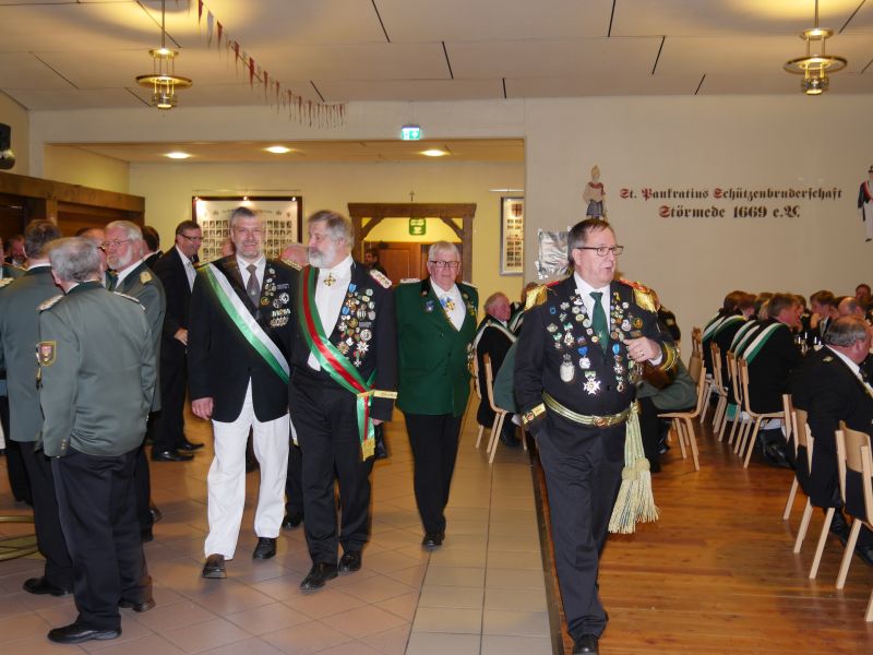 Am 24.03.2017 hat in der Störmeder Schützenhalle die Kreisdelgiertentagung des KreisschützenbundesLippstadt stattgefunden. Der Kreisvorstand konnte in der voll besetzten Schützenhalle die Delegationen von 65 Schützenvereinen aus der Region begrüßen. Nach dem Einmarsch der Fahnen des gastgebenden Vereins und der Kreisstandarte eröffnete Kreisoberst Bernhard Adams die Versammlung. Die Tagesordnung sah neben den verschiedensten Grußworten von Vertretern aus der Politik, den Repräsentanten des Sauerländer Schützenbundes sowie Oberst Peter Stephan und anderen auch den Geschäftsbericht und die mit Spannung erwartete Wahl zum neuen Kreisvorstand vor. Kreisoberst Bernhard Adams und der stellv. Kreisoberst Willi Hoppe-Nucke schieden nach 18 bzw. 8 Jahren Vorstandarbeit aus dem Amt aus. Als Nachfolger wurden der amtierende Kreisgeschäftsführer Franz Westermann aus Langeneicke zum Kreisoberst, Beisitzer Josef Freund zum stellv. Kreisoberst und Beisitzer Bernhard Gerken zum Kreisgeschäftsführer gewählt. Den Vorstand komplettieren Stepan Deimel aus Hemmern und Markus Christ aus Bad Westernkotten als Beisitzer. In den Beirat wurden Heinfried Buschkühl aus Effeln und Tobias Fernim aus Meiste gewählt. Auf Antrag des Kreisvorstandes wurden Bernhard Adams zum Kreisehrenoberst und Willi Hoppe zum Kreisehrenmitglied ernannt. Verabschiedet wurden sie mit einem großen Zapfenstreich unter Begleitung des Tambourkorps Störmede; Leitung Tambourmajor Hans-Reiner Beklas und des Musikzuges der freiwilligen Feuerwehr Störmede; Leitung Berthold Kutscher.