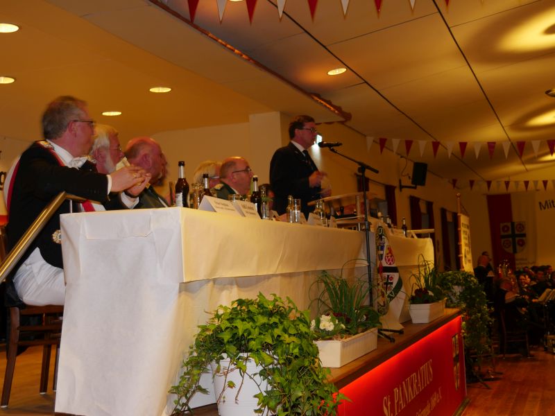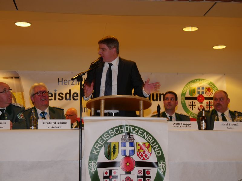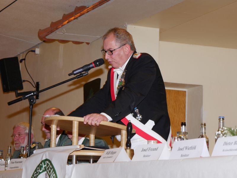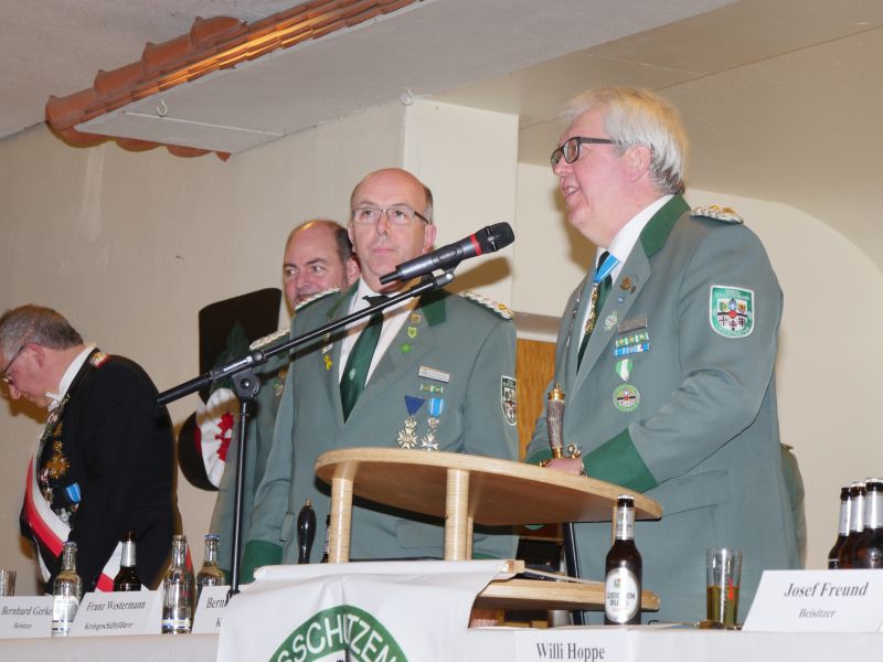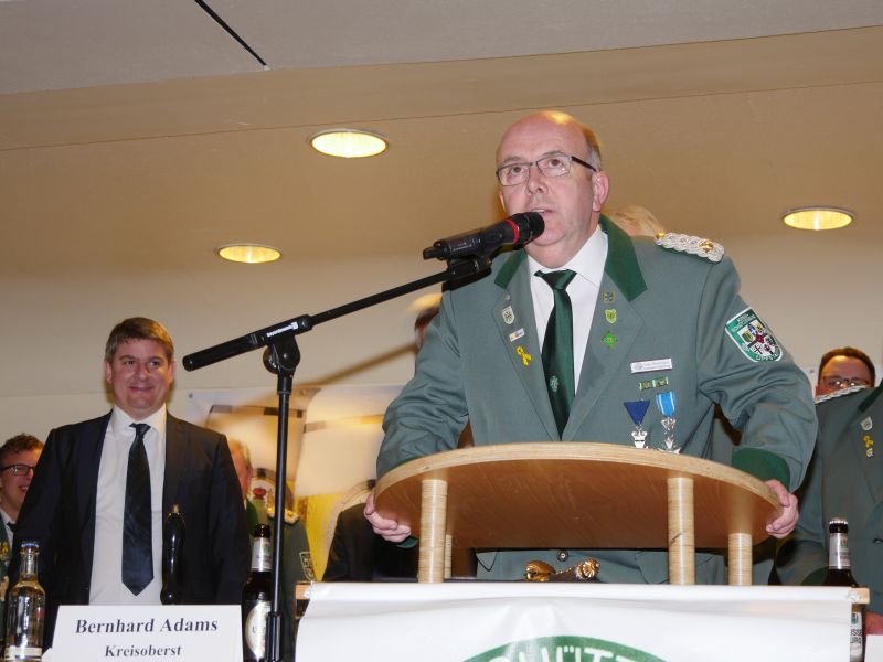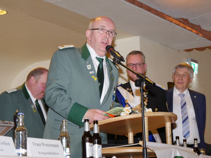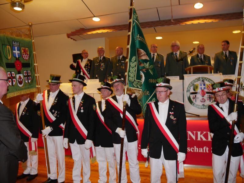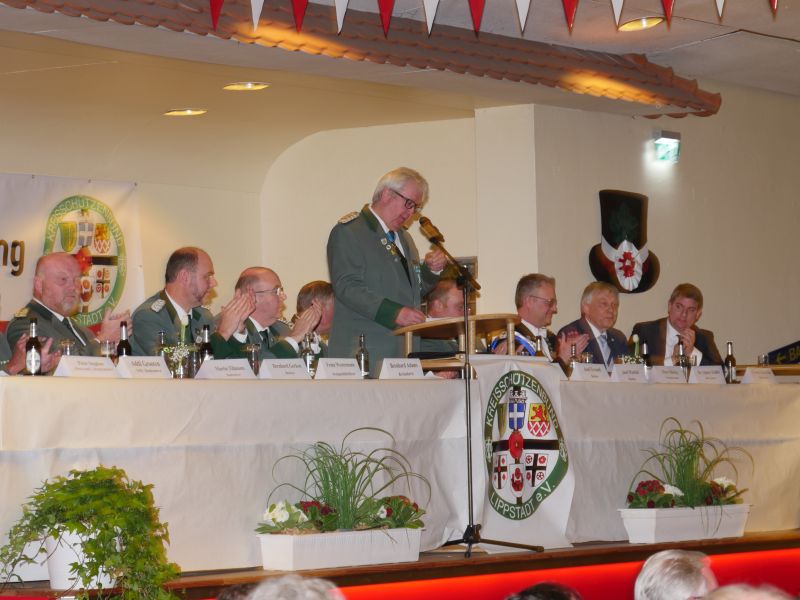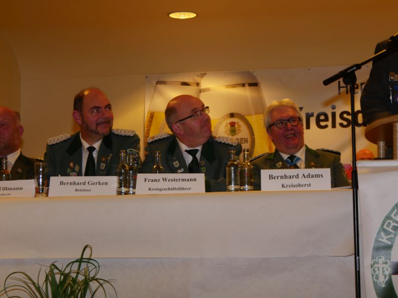 Am 24.03.2017 hat in der Störmeder Schützenhalle die Kreisdelgiertentagung des KreisschützenbundesLippstadt stattgefunden. Der Kreisvorstand konnte in der voll besetzten Schützenhalle die Delegationen von 65 Schützenvereinen aus der Region begrüßen. Nach dem Einmarsch der Fahnen des gastgebenden Vereins und der Kreisstandarte eröffnete Kreisoberst Bernhard Adams die Versammlung. Die Tagesordnung sah neben den verschiedensten Grußworten von Vertretern aus der Politik, den Repräsentanten des Sauerländer Schützenbundes sowie Oberst Peter Stephan und anderen auch den Geschäftsbericht und die mit Spannung erwartete Wahl zum neuen Kreisvorstand vor. Kreisoberst Bernhard Adams und der stellv. Kreisoberst Willi Hoppe-Nucke schieden nach 18 bzw. 8 Jahren Vorstandarbeit aus dem Amt aus. Als Nachfolger wurden der amtierende Kreisgeschäftsführer Franz Westermann aus Langeneicke zum Kreisoberst, Beisitzer Josef Freund zum stellv. Kreisoberst und Beisitzer Bernhard Gerken zum Kreisgeschäftsführer gewählt. Den Vorstand komplettieren Stepan Deimel aus Hemmern und Markus Christ aus Bad Westernkotten als Beisitzer. In den Beirat wurden Heinfried Buschkühl aus Effeln und Tobias Fernim aus Meiste gewählt. Auf Antrag des Kreisvorstandes wurden Bernhard Adams zum Kreisehrenoberst und Willi Hoppe zum Kreisehrenmitglied ernannt. Verabschiedet wurden sie mit einem großen Zapfenstreich unter Begleitung des Tambourkorps Störmede; Leitung Tambourmajor Hans-Reiner Beklas und des Musikzuges der freiwilligen Feuerwehr Störmede; Leitung Berthold Kutscher.