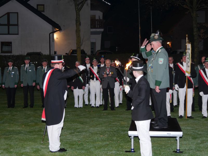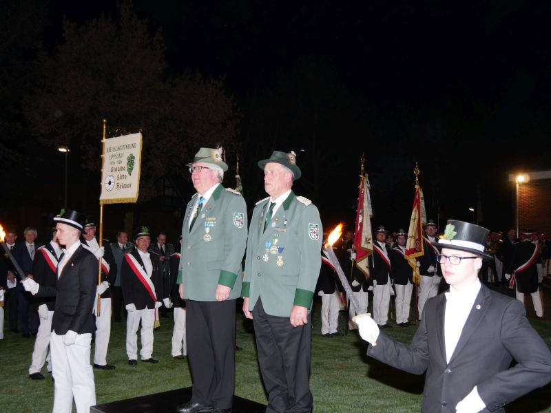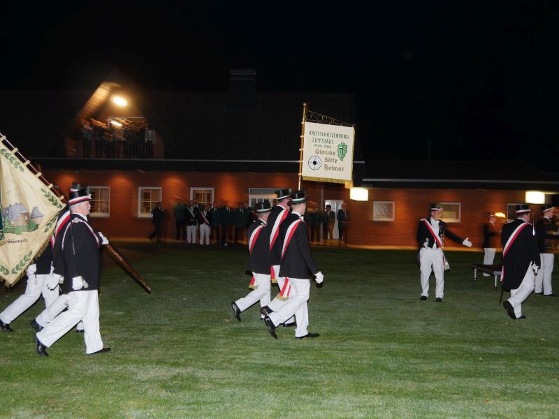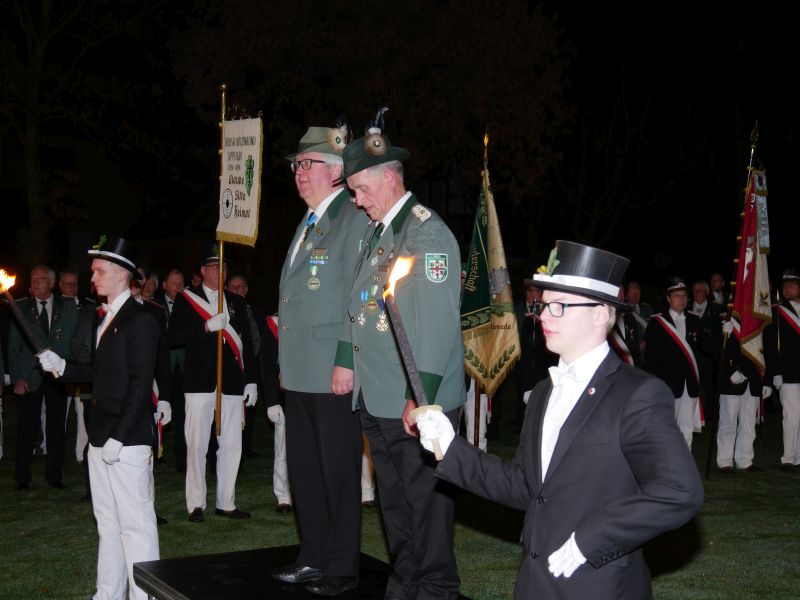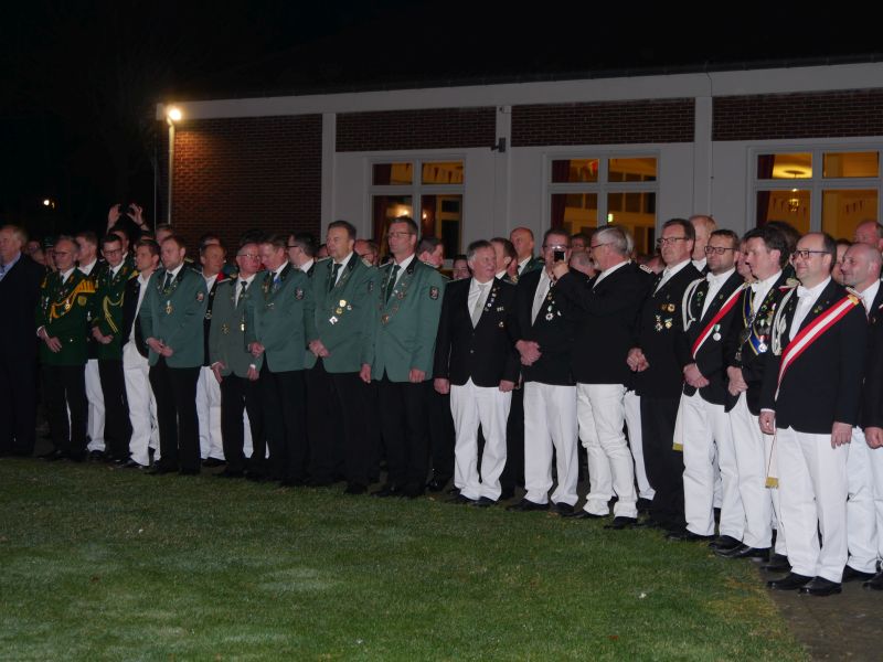 Es war für alle Anwesenden ein unvergleichliches Ereignis, sozusagen Gänsehaut pur. Besonderer Dank gilt allen, die an dieser auch für Störmede außergewöhnlichen Veranstaltung mitgewirkt und geholfen haben, hier den Kapellen für die unvergleichliche Atmosphäre, der freiwilligen Feuerwehr für die Verkehrsregelung und der Ausleuchtung des Schützenplatzes, den Jungschützen, die die Fackelträger gestellt haben, den vielen Kellnern vor und hinter der Theke, den Damen des Vorstands und des Hofstaates für die Bewirtung mit Schnittchen und und und…