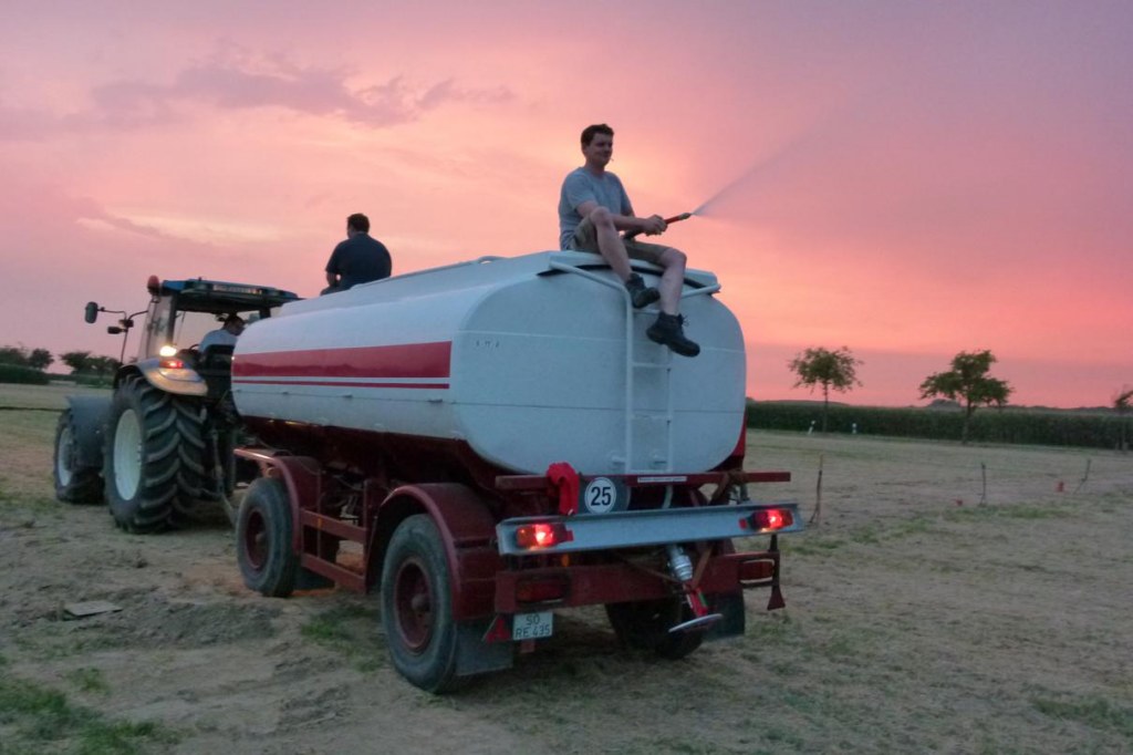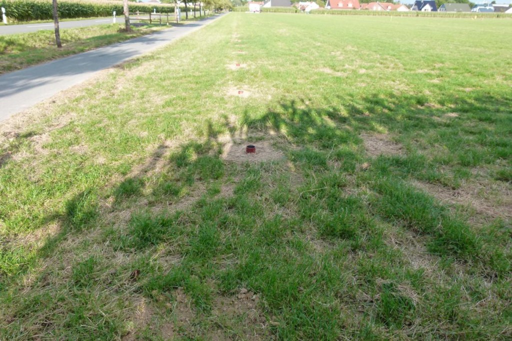Der Rasen wurde an den beschädigten Stellen neu eingesät und gewässert.