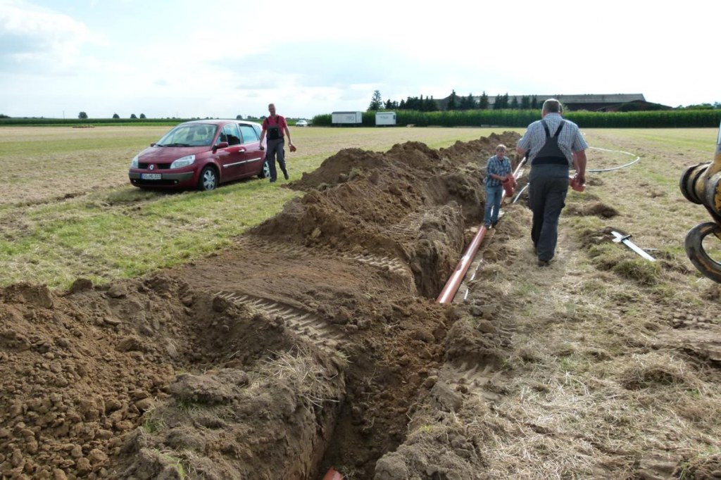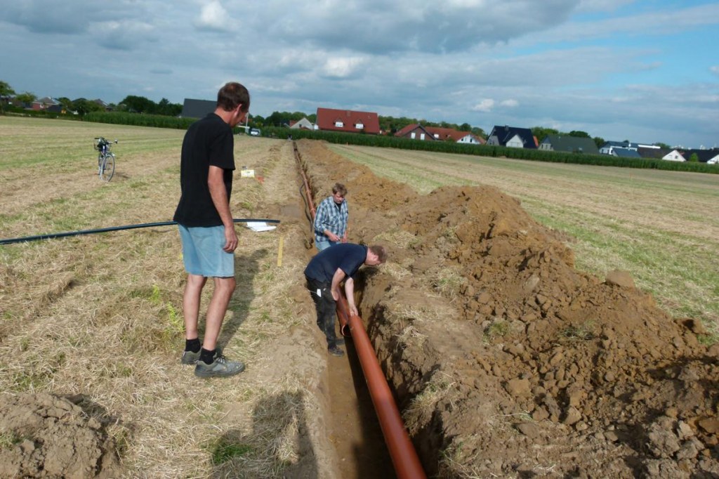 Die Frisch,- Abwasser- und Stromleitungen sind in der Erde.