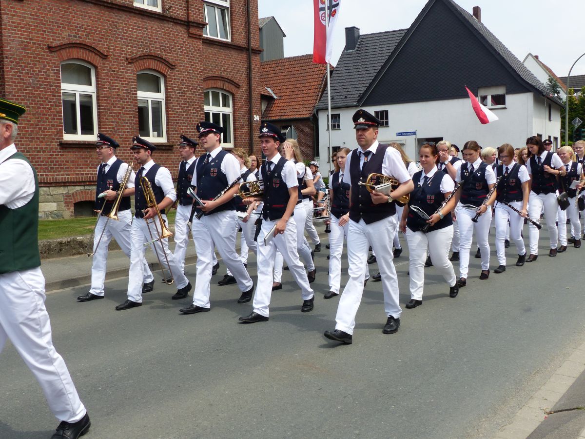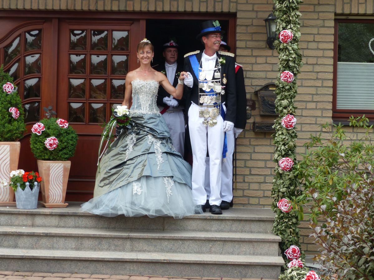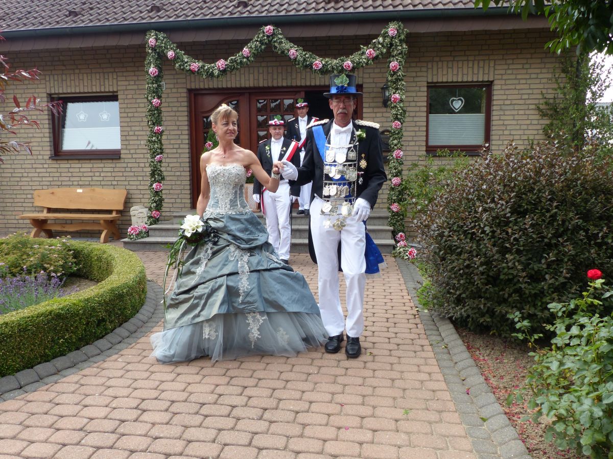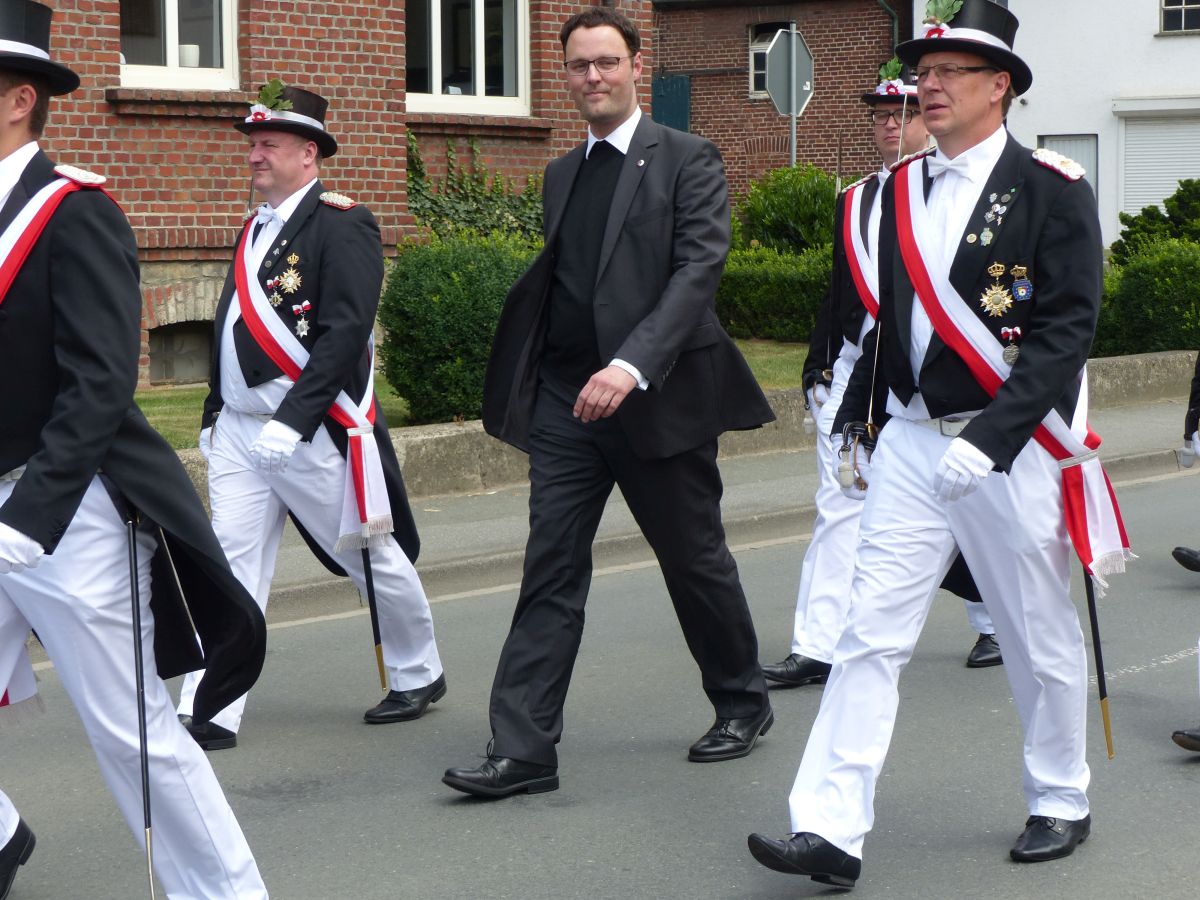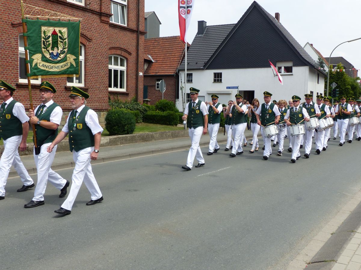 Was wäre ein Schützenfestumzug ohne die Kleider der Hofdamen? Vielleicht nicht ganz so schön anzuschauen… An diesem Sonntag passte alles, das Wetter spielte mit, Königin Marion Harrenkamp und ihre Hofdamen konnten sich in ihren schicken Kleidern, den an der Straße stehenden Besuchern des Umzugs aus Nah und Fern toll präsentieren. Dieses wunderbare Bild rundeten die 25jährige Jubelkönigin Mechthild Lammert und die 40jährige Jubelkönigin Renate Sigge super ab. Die Könige, Franz Harrenkamp, Berthold Lammert und Antonius Sigge brauchten nur noch galant die Hand zum Marschieren reichen. Auf dem Schützenplatz angekommen konnte das Bataillon zeigen wie ein Parademarsch klappt, kurzum Unfälle hat es keine gegeben. Nach dem obligatorischen Blumenstrauß für die Königinnen und den Jubilarsorden für die Jubelkönige wurde noch Dennis Könighaus mit dem Jungschützenkönigsorden 2017 geehrt. Zum Schluss gab es dann die wohlverdienten Ehrungen für die Musikerjubilare: 25 Jahre Musik beim Störmeder Schützenfest: Melanie Stienemeier (Musikzug Störmede); Martin Hunold (Musikzug Störmede), 40 Jahre Musik beim Störmeder Schützenfest: Franz Westermann (Tambourkorps Langeneicke); 50 Jahre Musik beim Störmeder Schützenfest: Willi Lübbert (Tambourkorps Langeneicke), 60 Jahre Musik beim Störmeder Schützenfest: Josef Dömer (Tambourkorps Störmede).