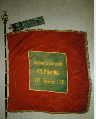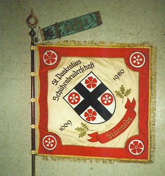 Seit 1982 werden die Ehrenschützen in der sogenannten Ehrenkompanie zusammengefaßt. 1990 bekam auch diese Kompanie ihre eigene Fahne, die von Kurt Weiser gestiftet wurde. Diese Fahne hat die Maße 1,20 x 1,20 Meter. An den Seiten finden sich 5 cm lange hochvergoldete Fransen. Der Stoff der Vorderseite ist aus grünem Brillantsamt, die Rückseite besteht aus beiger französischer Diagonalseide. Die Schrift ist in Gold-Lurex-Stickerei ausgeführt. Auf der Vorderseite ist ein Schützenvogel abgebildet, auf der Rückseite die St. Pankratius Kirche und das Pfarrhaus.