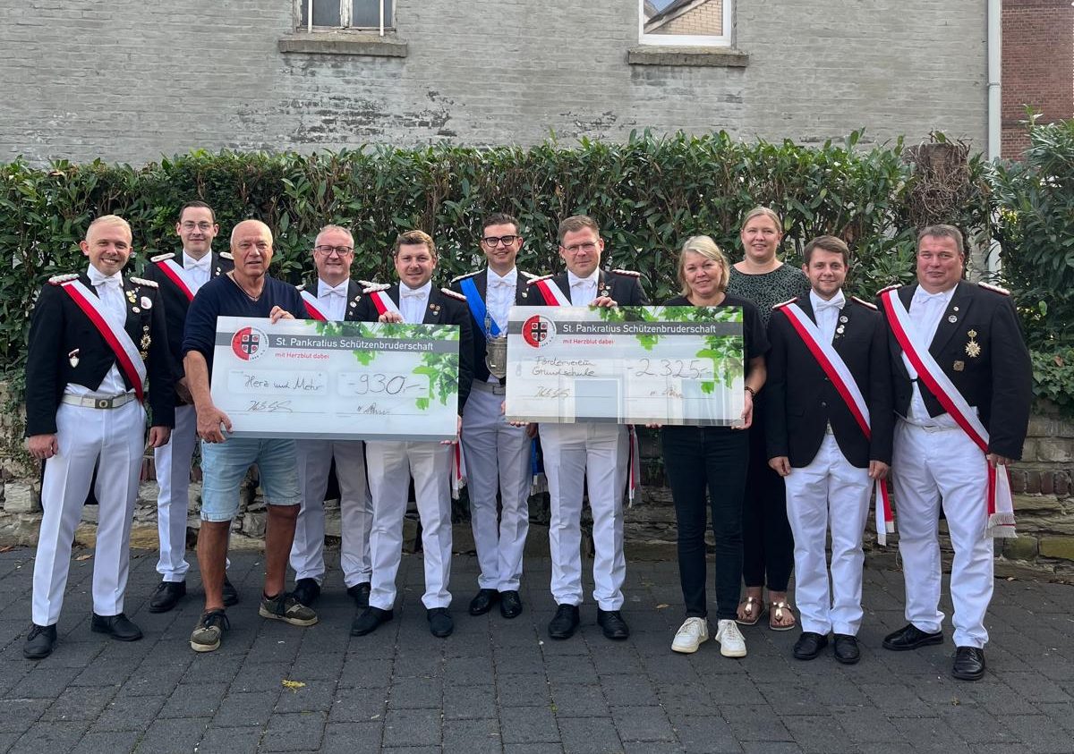 Spendenchecks mit den Erlösen der Lampenversteigerung und der Zylindersammlung des diesjährigen Schützenfests an die Empfänger übergeben.