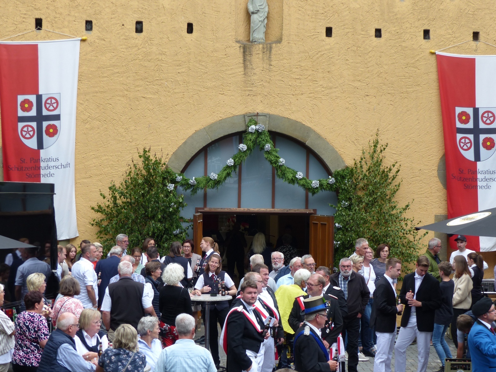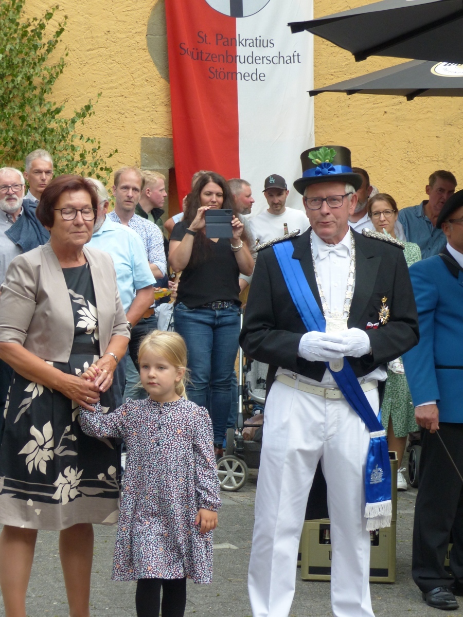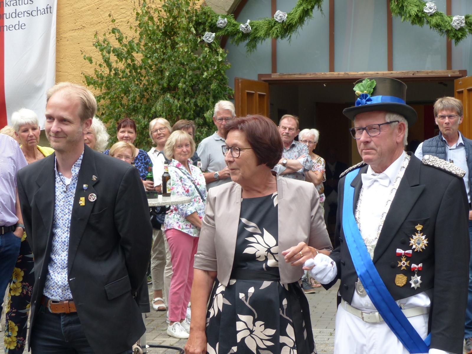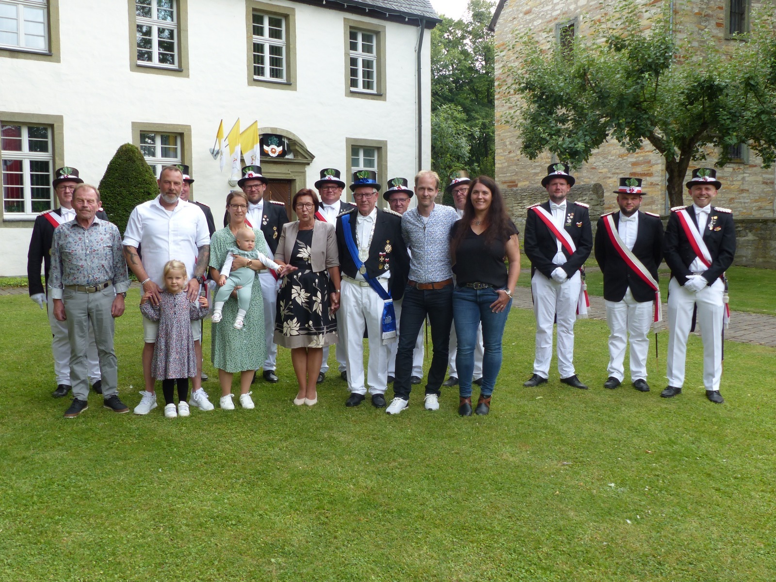 Franz Schulte, 25-jähriges Jubelkönigspaar 2022 Werner und Waltraud Dreier, Josef Dömer, 25-jähriges Jubelkönigspaar 2020 Konrad und Maria Böddeker, Königspaar Dennis Brinkhaus und Clarissa Kosfeld